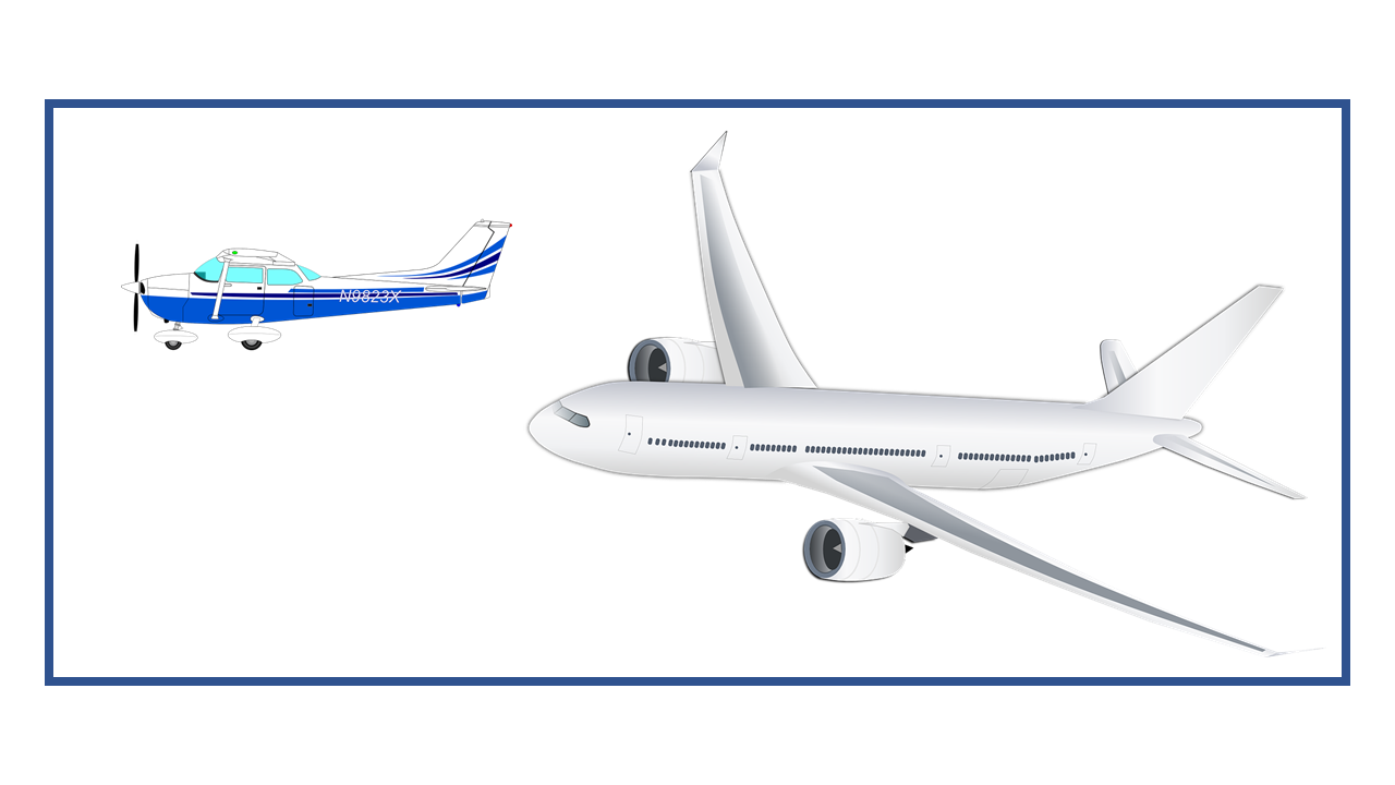 You will be shown an image of a small and large plane and asked to confirm the orientation of a small plane from the viewpoint of a large plane.